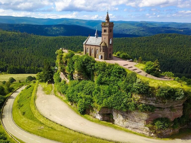 Streckenwanderung ab Château Haut-Barr in Saverne – Burgruinen Grand und Petit Geroldseck – Brotschberg – Wüstenberg – Schlossberg – Geissfels – Rocher de Dabo mit Kapelle – Abendessen im Panoramarestaurant / Alternativ als Rundwanderung: bis Schloss- und Wüstenberg und zurück – Rückfahrt über Marmoutier mit Stopp am Kloster – Abendessen in einer Auberge (ca. 19 km Wanderweg, ca. 145/110 km Busstrecke)