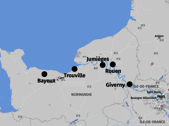 Giverny mit Haus und Garten von Monet – vorbei an der Burgruine Gaillard – Ankunft in Trouville-sur-Mer – Zeit für eigene Entdeckungen – Abendessen in einem Restaurant in Trouville (ca. 200 km)